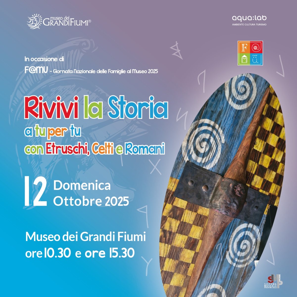 In occasione della Giornata Nazionale delle Famiglie al Museo, edizione 2025, il Museo dei Grandi Fiumi vi aspetta per accompagnarvi in un viaggio a ritroso nel tempo, alla scoperta di tradizioni, riti e abitudini, accompagnati dalla voce della guida e dalle gestualità dei rievocatori della Legio I Italica. Attività adatta a tutte le famiglie con bambini e ragazzi di ogni età.