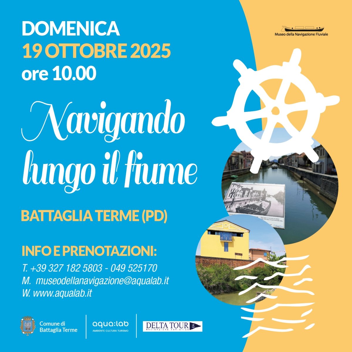 Domenica 19 Ottobre sarà dedicata al territorio, alla storia e alle tradizioni di Battaglia Terme, con il percorso Navigando lungo il Fiume, un viaggio nel suggestivo mondo del trasporto fluviale, autentico custode di una sapienza millenaria narrata dal paesaggio, dalla bellezza ed eleganze dei grandi capolavori architettonici lungo le sue sponde, dalla sapienza celata dietro grandi opere di ingegneria idraulica e dal patrimonio di antichi saperi, mestieri e tradizioni di chi lo ha vissuto. Alla navigazione lungo il fiume, realizzata In collaborazione con Delta Tour Navigazione Turistica, seguirà l’ingresso e breve visita guidata alla collezione del Museo della Navigazione Fluviale di Battaglia Terme. Il tour avrà inizio alle ore 10.00 e avrà una durata complessiva di circa due ore.